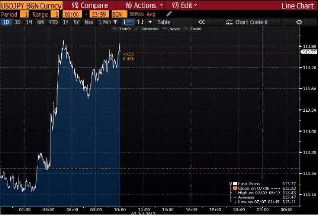 Dolar/yen paritesi, 113.84 seviyesine yükselmesinin ardından TSİ 10:04'te 113.76'e geldi