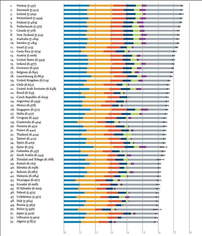 Raporda ilk 10'u Norveç'in yanında Danimarka, İzlanda, İsviçre, Finlandiya, Hollanda, Kanada, Yeni Zelanda, Avustralya ve İsveç oluşturdu.