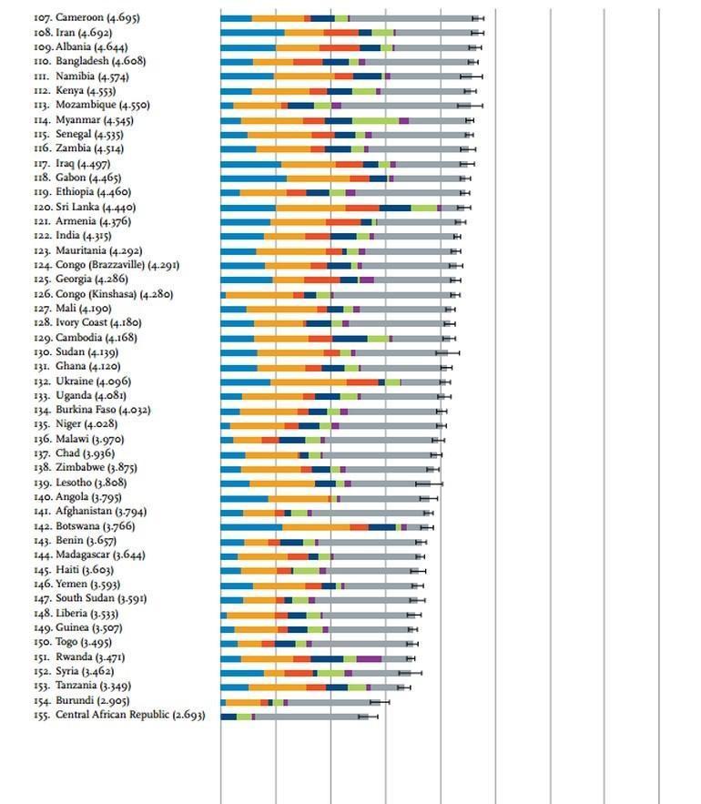 Sahra altı Afrika'daki ülkeler ile Suriye ve Yemen listede yer alan 155 ülke içerisinde en mutsuz ülkeler arasında yerlerini aldılar.