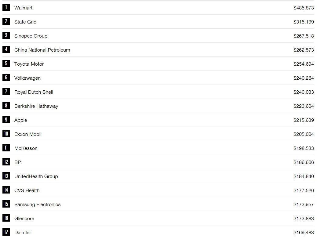 Her yıl düzenli olarak yayınlanan, dünyanın en büyük 500 şirketinin sıralandığı Fortune 500 Global 2016 yılında toplam 27, 7 trilyon dolarlık bir satış geliri elde etti. Dünyanın 500 devinin kârı ise 1,5 trilyon dolar oldu.