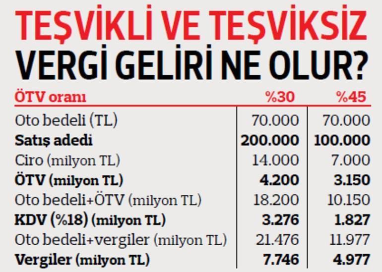 2019 yılı bütçesinde motorlu taşıtlardan gelmesi beklenen Özel Tüketim Vergisi (ÖTV) geliri 24 milyar TL olarak yer aldı. Bu gelir 500 bin adetlik teşviksiz pazar üzerinden hesaplandı. Ancak mevcut koşullarda pazarın yıl sonunda teşviksiz 300 bin, teşviklerin devam etmesi halinde ise 350 bin adede ulaşması öngörülüyor. Bunun da 7.2 ile 10 milyar TL arasında bir bütçe açığına sebep olması bekleniyor.