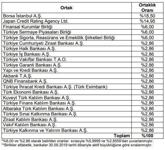 JCR Avrasya Derecelendirme Şirketi A.Ş. (JCR-ER)’nin yüzde 85,05 hissesinin Türk bankaları ile finansal sektörde faaliyet gösteren bazı kuruluş ve kuruluş birlikleri tarafından satın alınmasına yönelik pay devir ve hissedarlar sözleşmesi 28 Kasım 2019’da imzalandı.