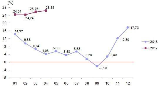 Ana sanayi grupları sınıflamasına göre 2017 yılı Nisan ayında en fazla aylık ve yıllık artış enerji mallarında gerçekleşti.